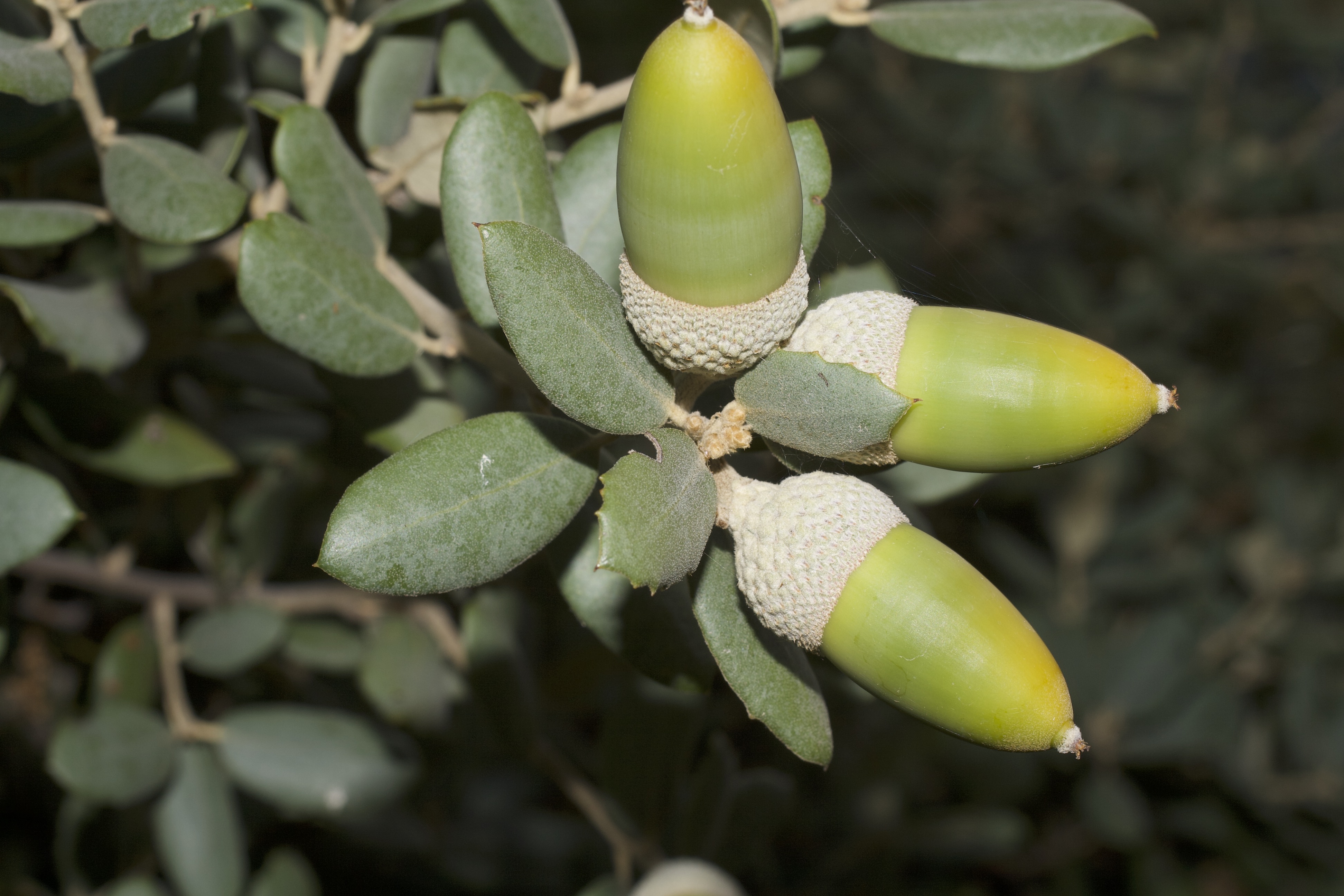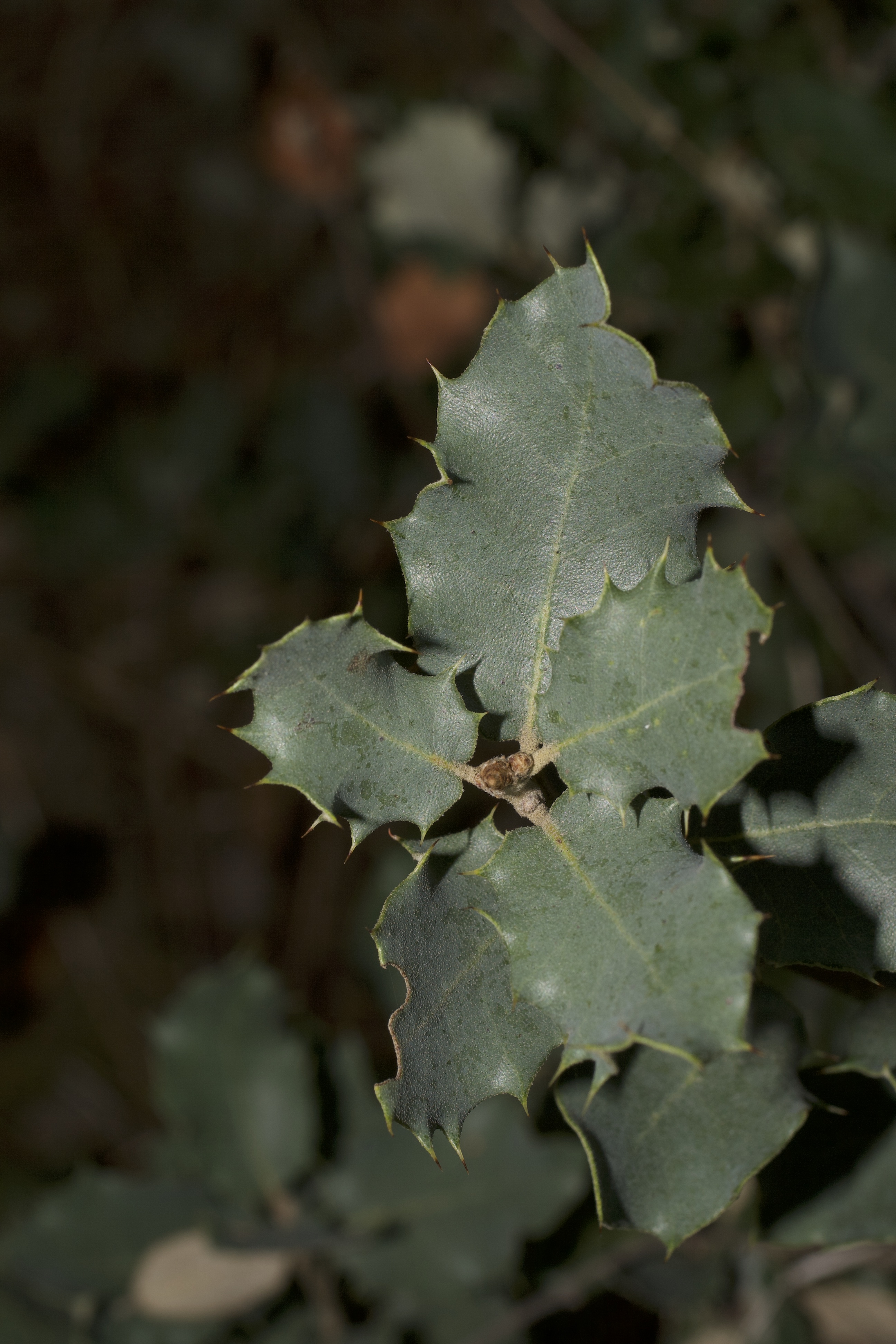 Figura III.1.1. Transição da fase juvenil para a fase adulta. Folhas de azinheira juvenis (à esquerda) e adultas (à direita). Folhas com origem na mesma árvore: as juvenis extraídas de ramos epicórmicos e as adultas da parte mais alta da canópia. [Fotografias do autor.]