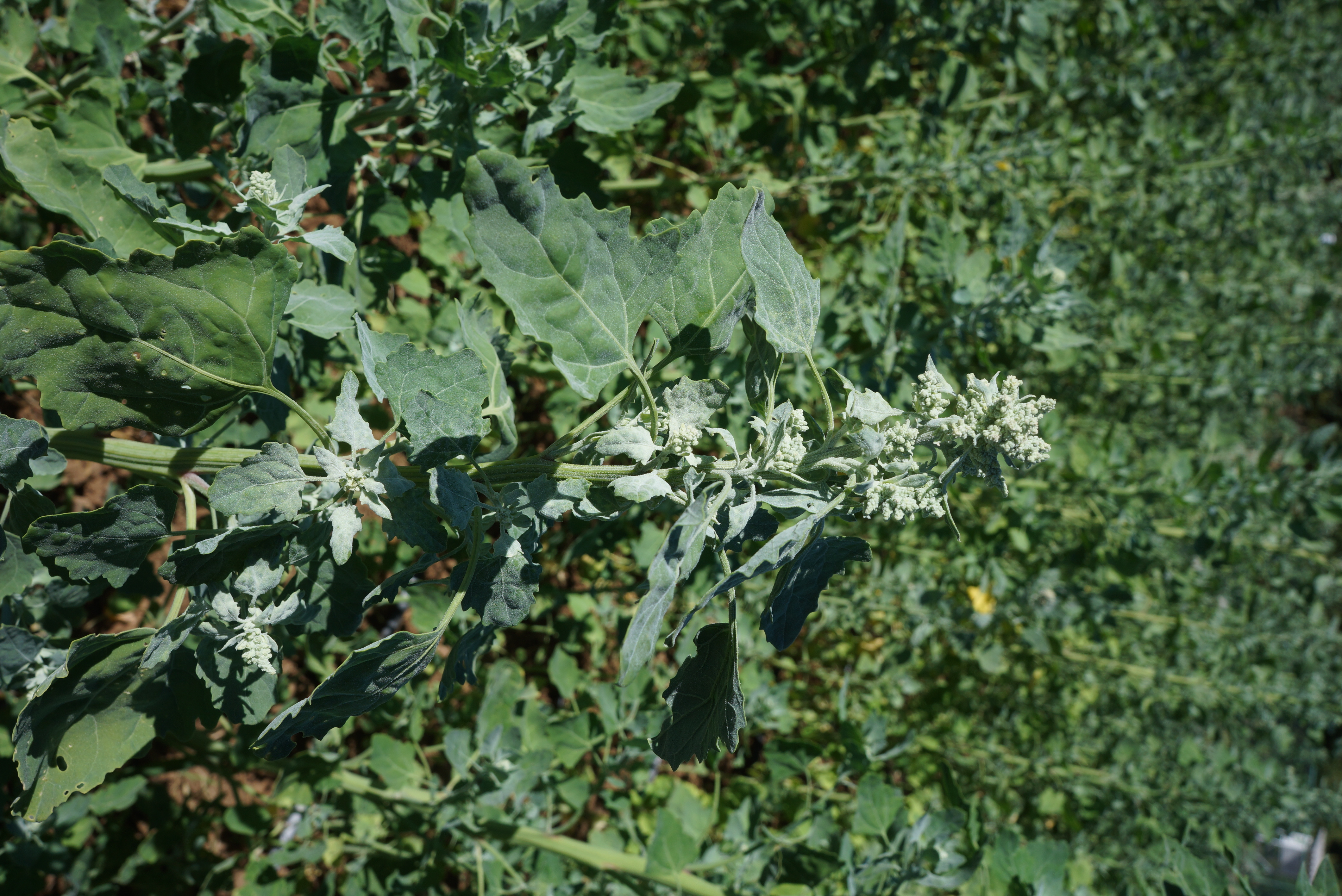 Figura III.1.3. Fotoperíodo. Quinoa (Chenopodium quinoa, Chenopodiaceae), uma planta de dias curtos, por essa razão, a florir tardiamente, no início do outono, em Trás-os-Montes (Portugal) – não chegará a produzir semente. [Fotografia do autor.]